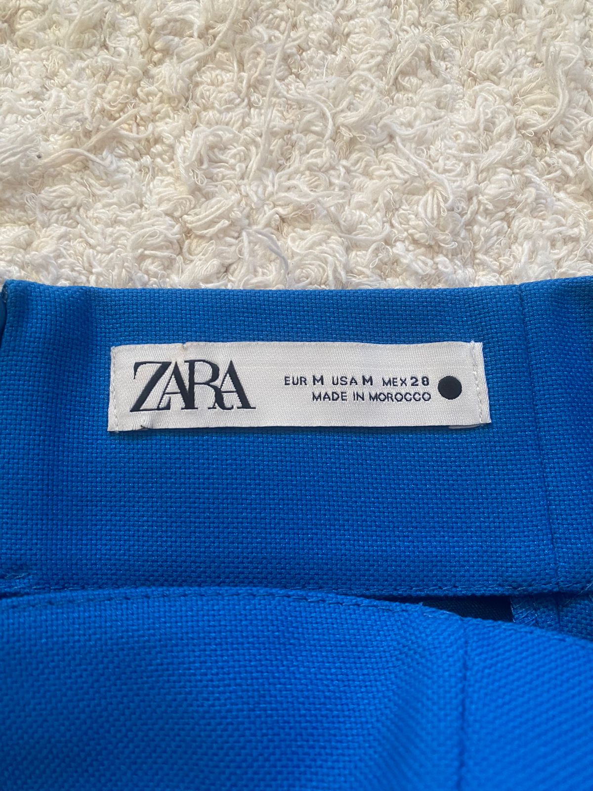 Confectionnée dans un tissu bleu vibrant, cette minijupe bleu Zara offre un look à la fois chic et décontracté. Sa coupe courte met en valeur vos jambes avec élégance, tandis que sa taille haute affine votre silhouette et vous donne une allure des plus gracieuses.